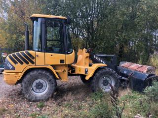 Årsmodell: 2002 Timmar: 9268 Nyservad, Olja filter, Luftfilter,Bränslefilter Samt Ventiljustering. Zettelmaier 602/L30 fäste. Tandad skopa ca: 2000 mm. Planskopa ZYX ca: 2400 mm. Motorvärmare med grenledning. Maskin i fungerande skick. Spricka i motorhuv, se bild. Klädsel i sittdel trasig, se bild.