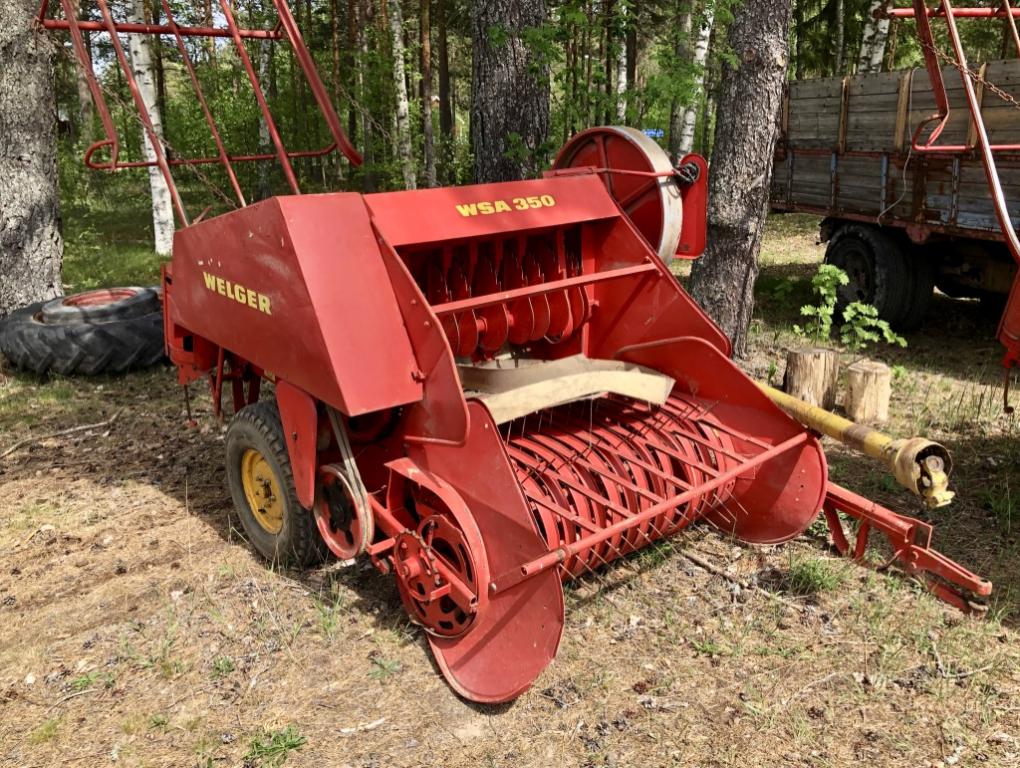 WSA 350 har mångsidig användning… som pick-up-press för hö, halm och ensilage som stationär press som lastapparat för grönfoder Kapacitet: 7 ton hö per timme Ballängd inställbar mellan 400-800 mm Årsmodell: okänt ( 1969-1975) Något defekt i pickupen Fungerande