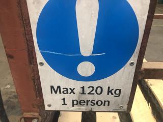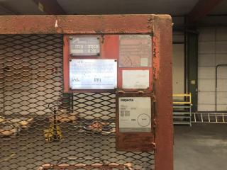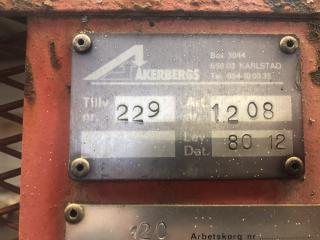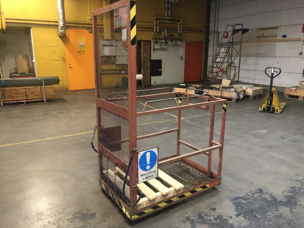En Åkersberg Truckkorg År: 1980 Tillverk nr: 229 Maxvikt: 120 kg Bredd: 800 mm Längd: 1200 mm Höjd: 1000 mm Totalhöjd: 1900 mm
