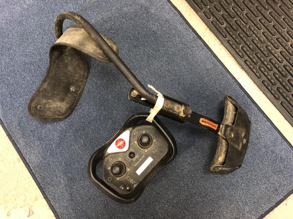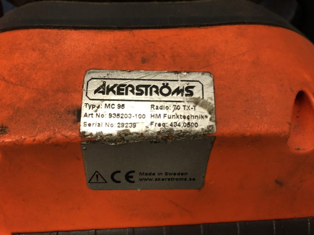 Åkerströms joystick fjärrkontroll. Modell: MC 95 Serienummer: 935203-100 1st fjärrkontroll Remotus MJ-100 med hållare. Skick: Okänt skick.